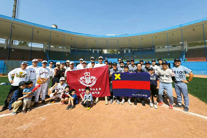 Brazil is the largest country in South America and home to diverse ethnic groups. Japanese predecessors who immigrated to Brazil, among whom were also graduates of Waseda, have established the trust and culture of Japanese people. The Brazil Tomonkai is the “spiritual home” built by such seniors. We are currently a large group of about 80 members, including those who came as expatriates, upon marriage, or to start their business. We have also interacted with current students on occasions such as the three games held by the Waseda University Baseball Club and Keio University Baseball Club in commemoration of Japan–Brazil relations and the Glee Club performances in Brazil. As a variety of members from seniors to current students meet, spend time together, and share “The infinite Eternal Aim, Careful, too, of present need,” we feel the spirit of Waseda even in Brazil.