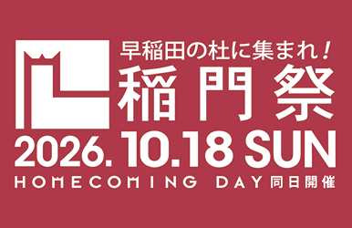 2026稲門祭のテーマは、「稲門は、縁だ。力だ。~個の時代。だからネットワークが価値になる~」です。この言葉が示すとおり、早稲田の力の源泉は、人と人とのつながり、すなわち「縁」にあります。稲門祭が文字通り、全国、世界各地の校友による母校支援の最高のイベントとなることを目指します。